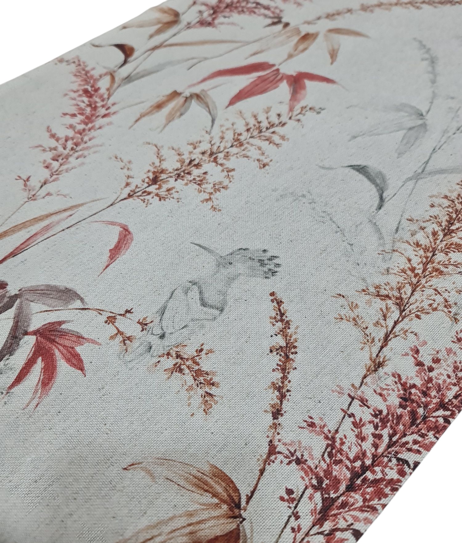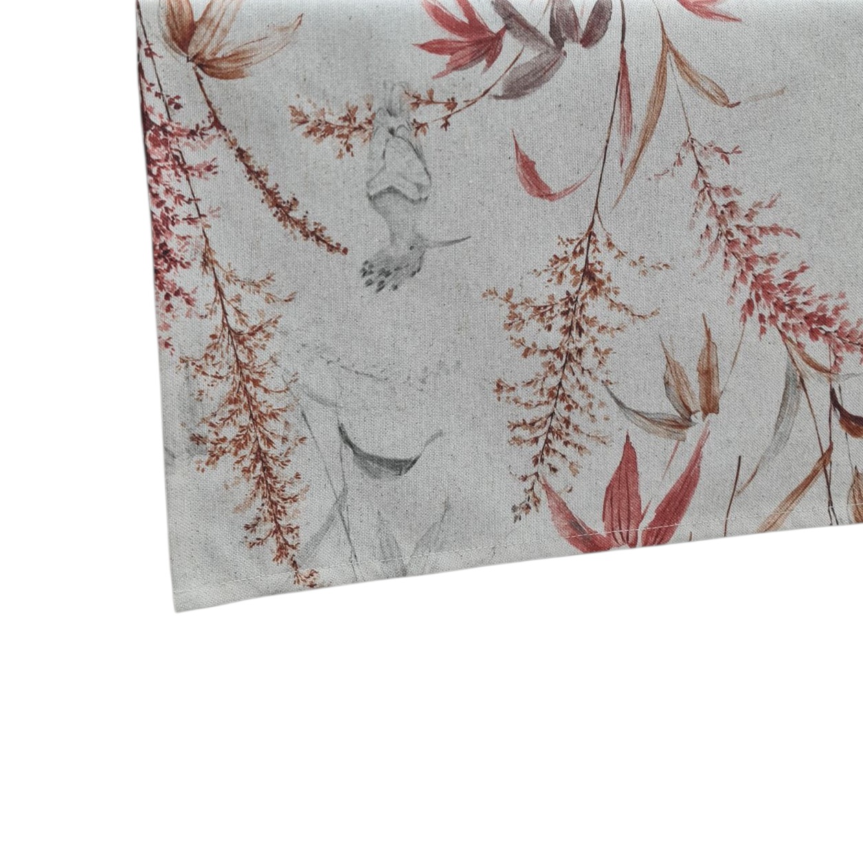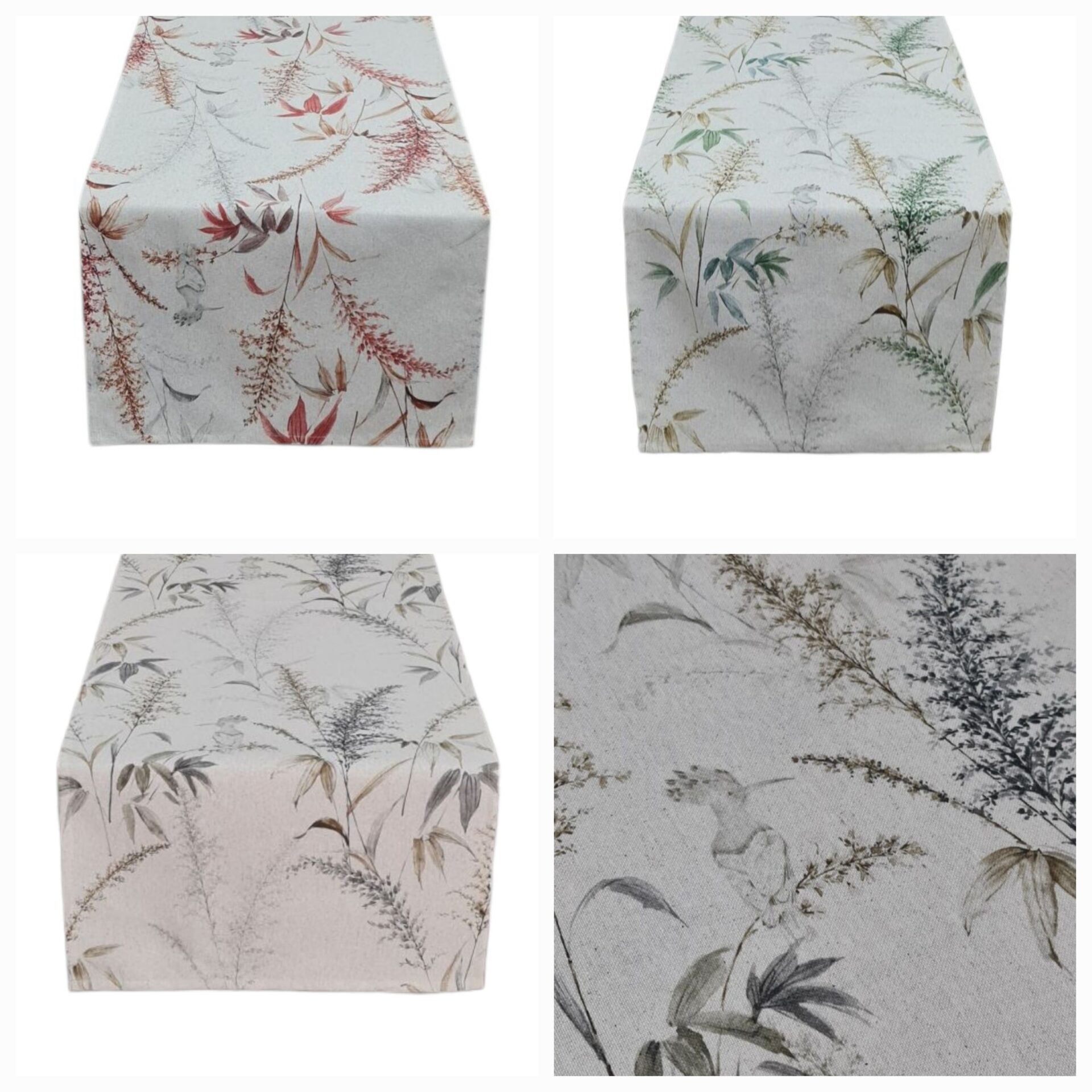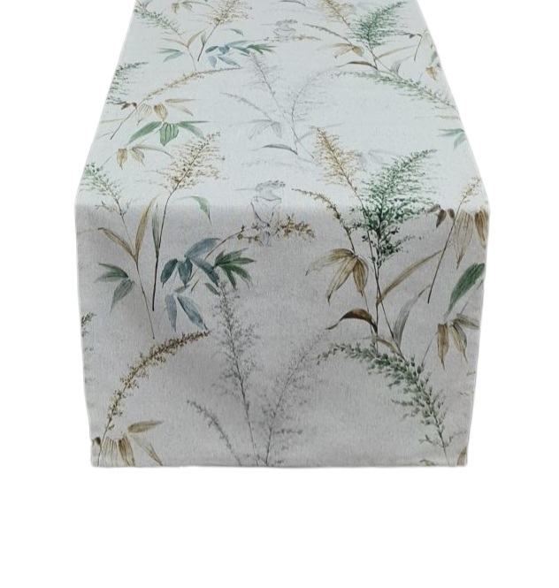 Trasforma la tua tavola con questo elegante runner dal motivo botanico delicato e raffinato. Il design presenta un armonioso pattern di fogliame e piante in tonalità neutre di fango e beige, di verde e beige e di arancio e beige su sfondo chiaro, creando un’atmosfera naturale e sofisticata. Realizzato in misto lino di alta qualità, questo runner offre il perfetto equilibrio tra eleganza e praticità. Disponibile in diverse dimensioni per adattarsi a ogni tipo di tavolo: 40x100cm, 45x140cm, 47x180cm e 48x200cm. Il motivo decorativo, che include delicate rappresentazioni di foglie e un grazioso uccellino, aggiunge un tocco di natura alla tua sala da pranzo. La texture del misto lino conferisce al runner un aspetto ricercato e una piacevole sensazione al tatto, rendendolo perfetto sia per occasioni speciali che per l’uso quotidiano. Il design versatile si abbina facilmente a diversi stili d’arredamento, dal classico al contemporaneo.