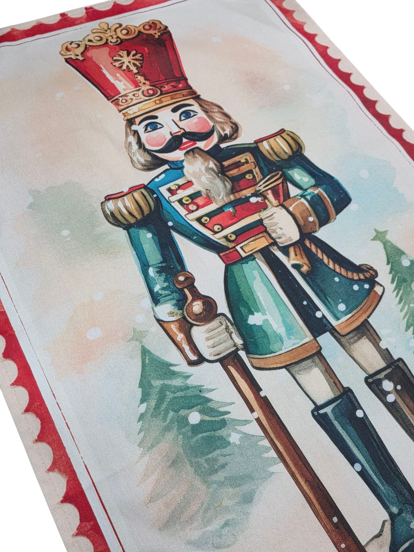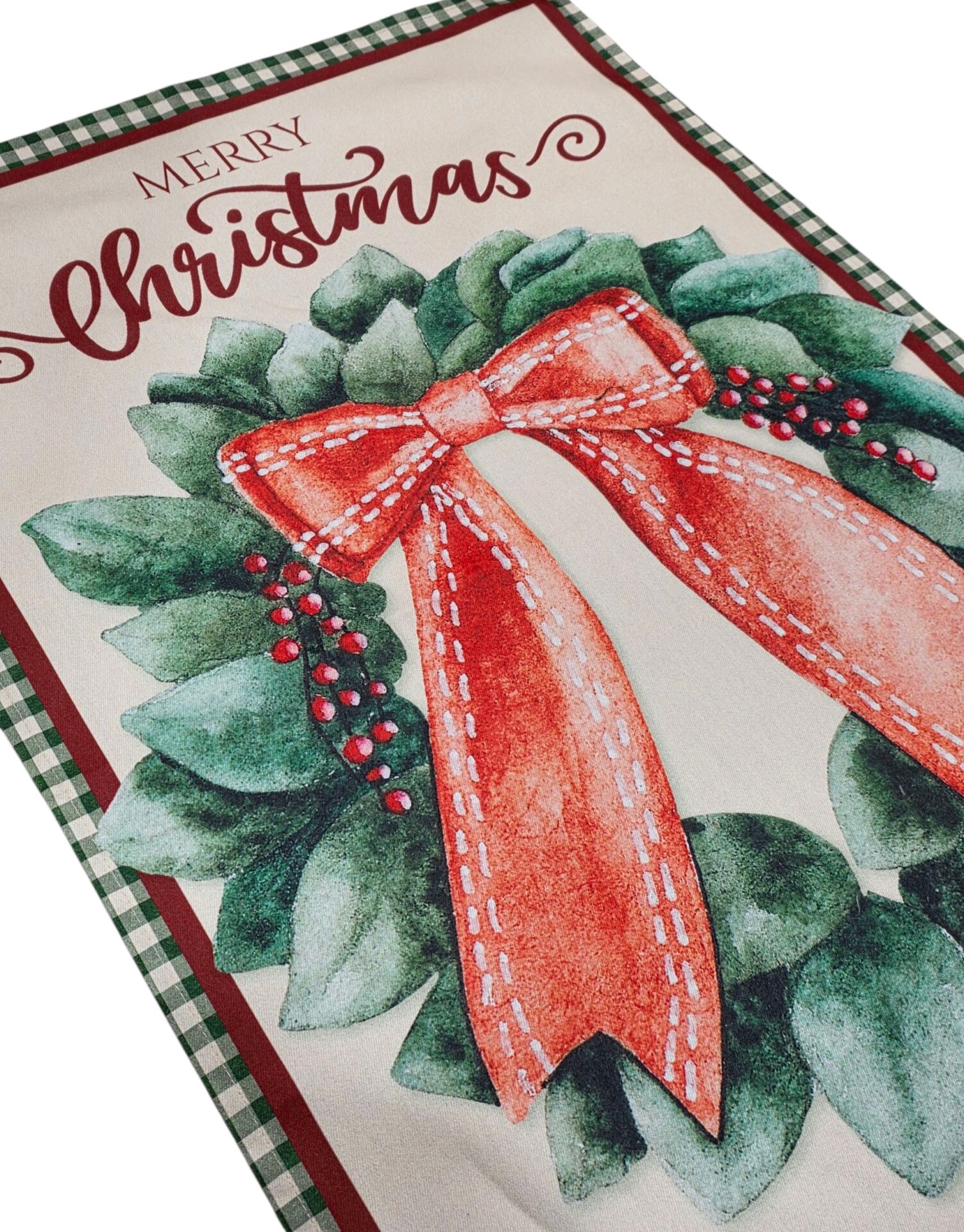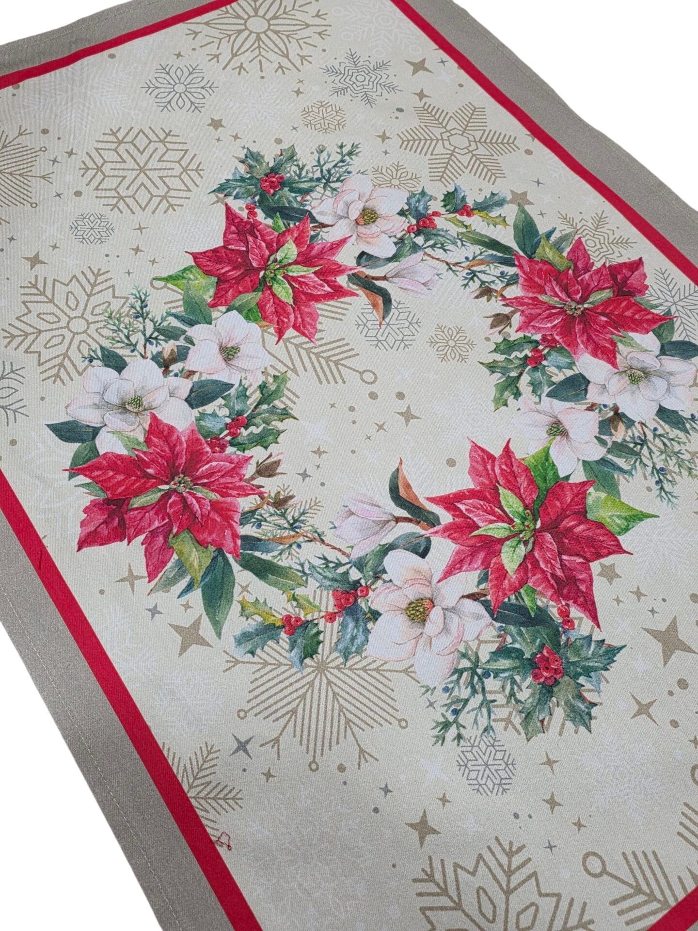 Posizionamento del runner al centro del tavolo con calata a destra e sinistra: Misura la lunghezza del tavolo e posiziona il runner al centro, facendo in modo che si estenda sia a destra che a sinistra per almeno 15-20 cm. Questo crea un effetto di cascata sui lati del tavolo. Assicurati che il runner sia ben allineato e dritto lungo il tavolo.