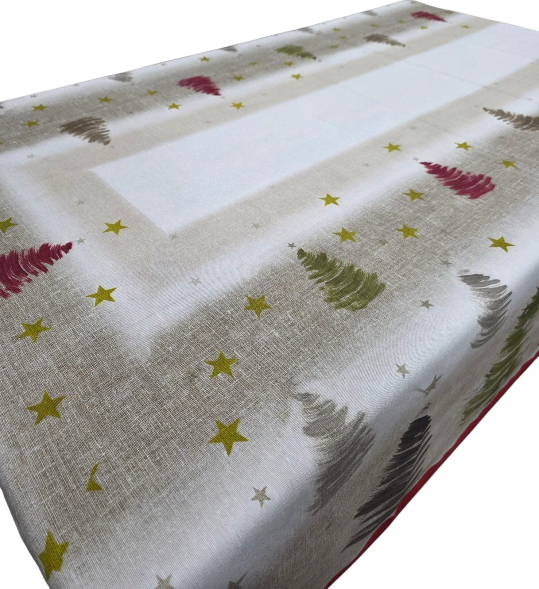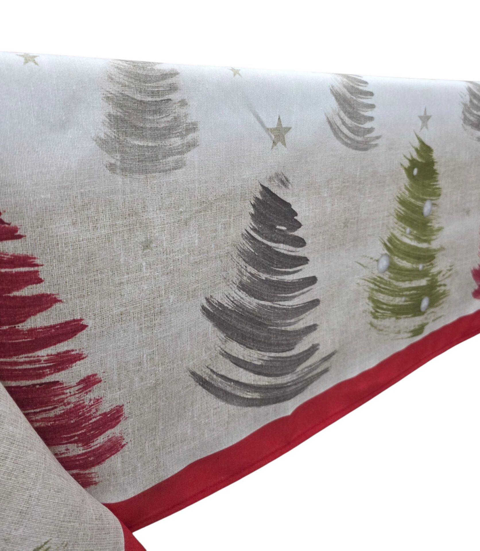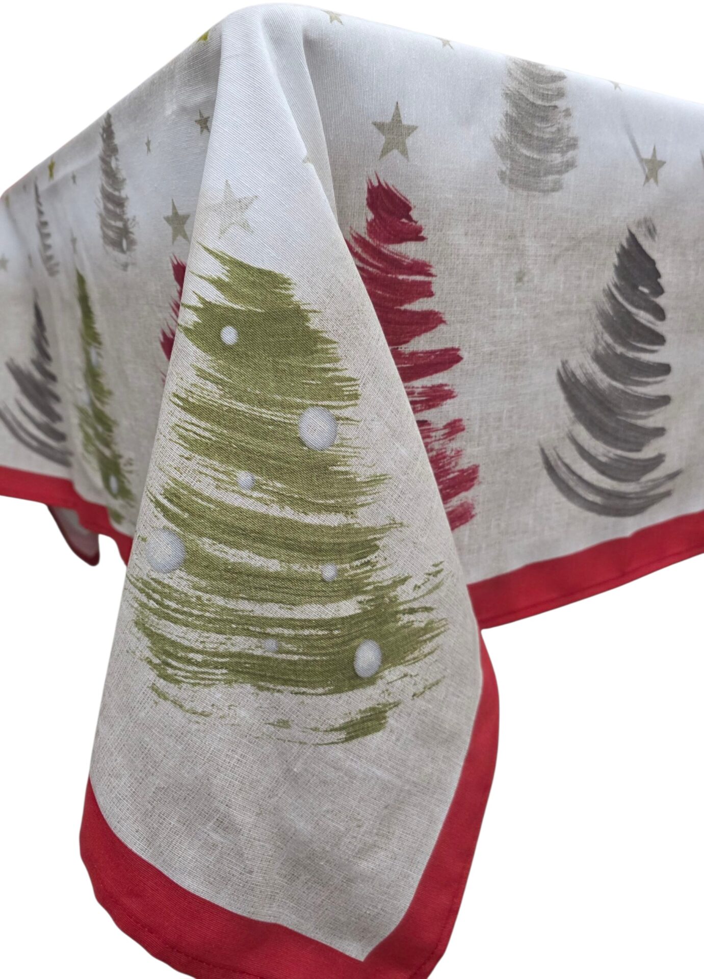 Trasforma la tua tavola in un’opera d’arte natalizia con questa elegante tovaglia in misto cotone.