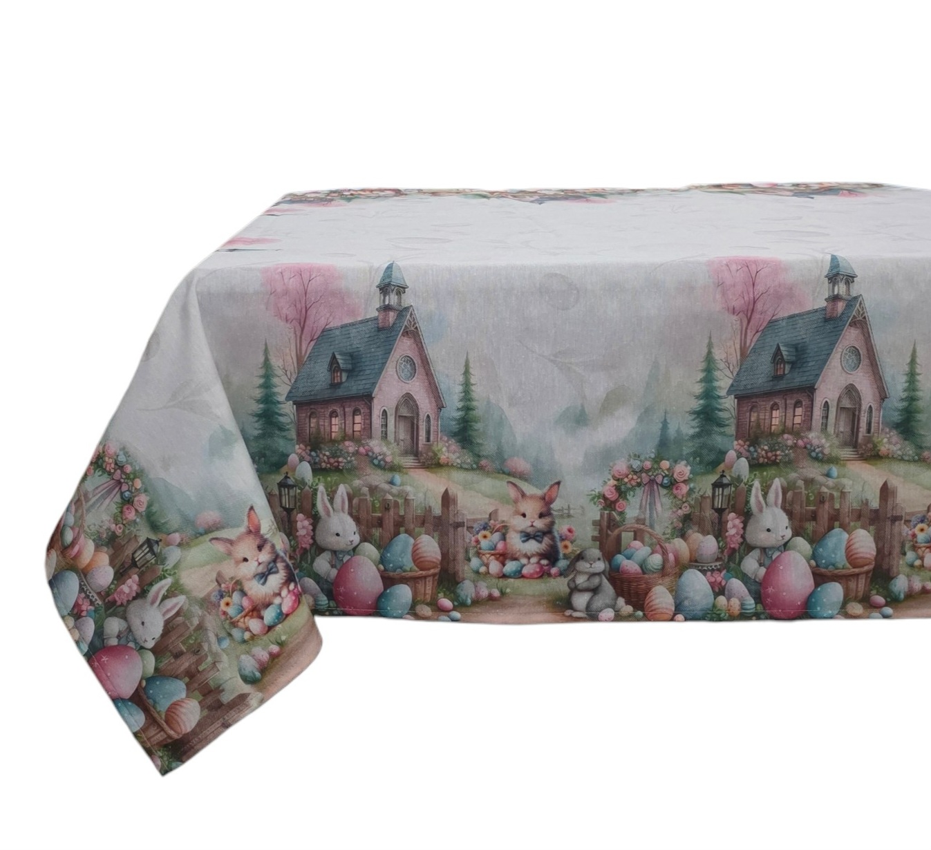 Trasforma la tua tavola in un’opera d’arte pasquale con questa elegante tovaglia in misto cotone.