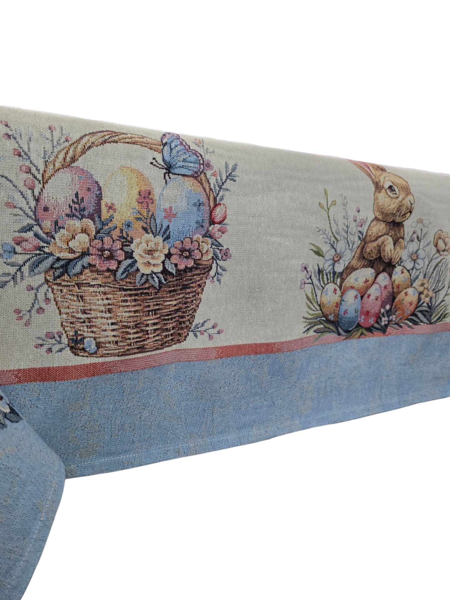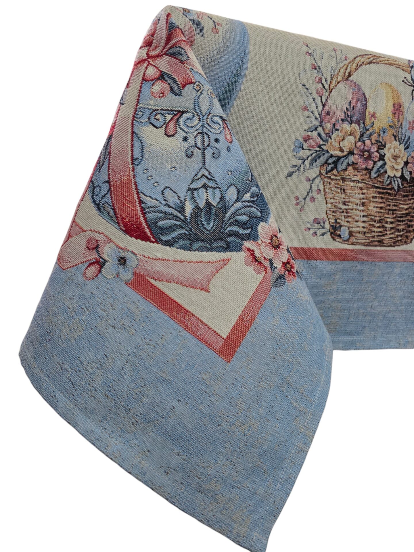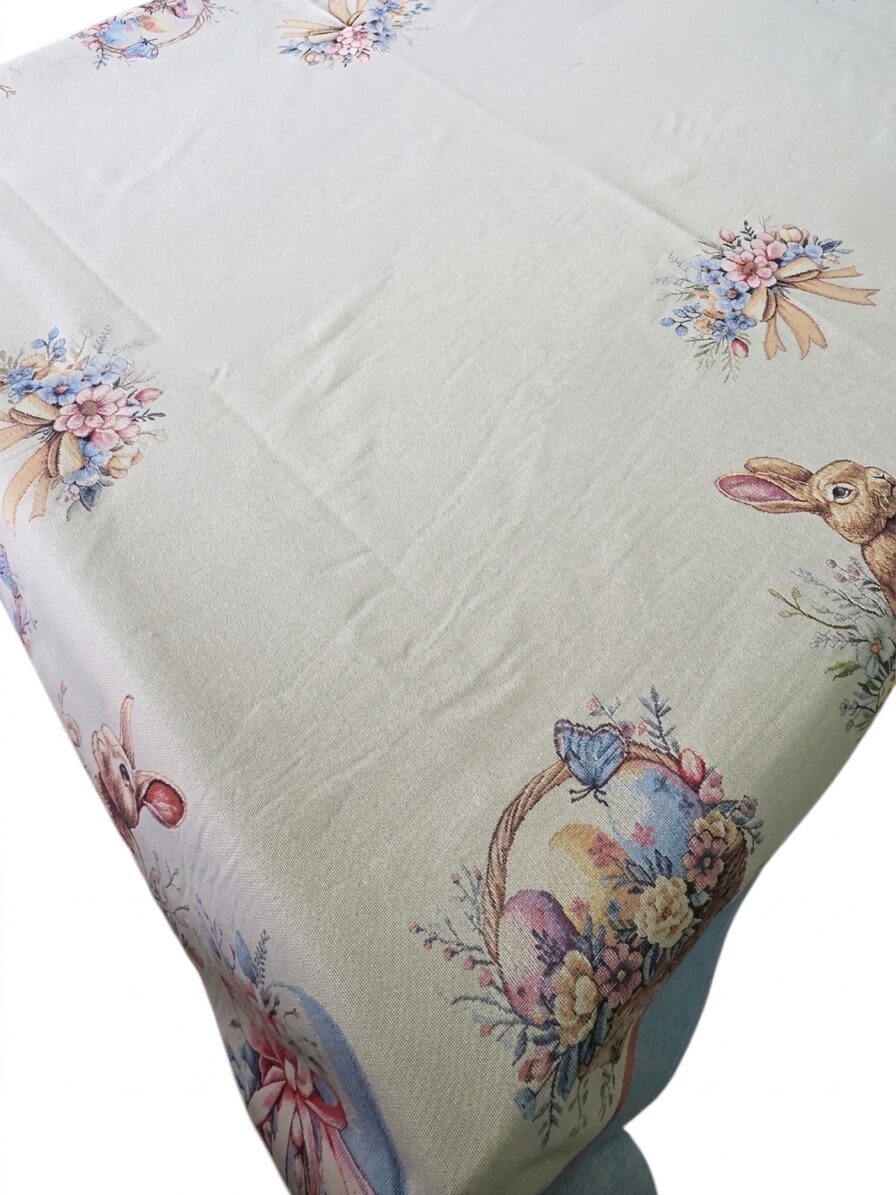 Questa elegante tovaglia con tema pasquale trasformerà la vostra tavola in un’accogliente celebrazione primaverile. Realizzata in pregiato tessuto gobelin, presenta un incantevole motivo decorativo con coniglietti pasquali, cesti di uova colorate adornati con fiocchi, e delicati fiori che creano un’atmosfera festosa e raffinata. Il bordo azzurro polvere aggiunge un tocco di eleganza che completa perfettamente il design. Questa tovaglia è ideale per pranzi e cene pasquali, ma anche per qualsiasi occasione primaverile in cui desiderate creare un’atmosfera speciale. Il tessuto gobelin garantisce durabilità e una texture ricca che valorizza ogni tavola. Disponibile in due dimensioni versatili – 140x180cm e 140x240cm – si adatta perfettamente a tavoli di diverse dimensioni, permettendovi di scegliere la misura più adatta alle vostre esigenze. Perfetta per riunioni familiari, brunch pasquali o semplicemente per aggiungere un tocco stagionale alla vostra casa, questa tovaglia combina funzionalità e stile in un unico prodotto decorativo.
