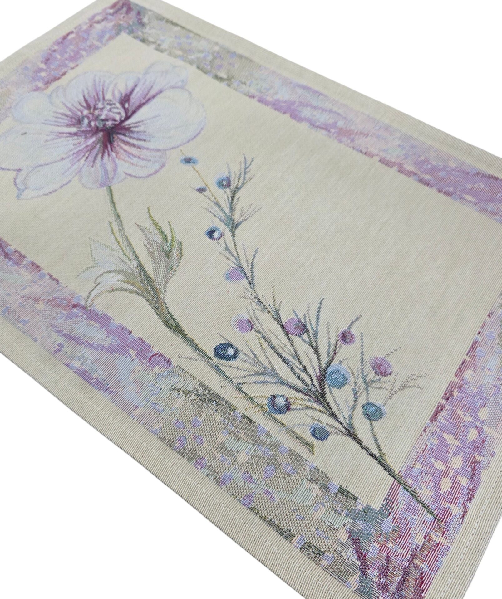 Queste eleganti tovagliette per la colazione in gobelin portano un tocco di raffinatezza floreale alla vostra tavola. Caratterizzate da un delicato motivo botanico con fiori lillà e foglie dai toni tenui, queste tovagliette creano un’atmosfera romantica e accogliente per ogni pasto. Il design presenta una cornice decorativa in tonalità viola e beige che incornicia splendidamente il motivo floreale centrale, con dettagli di piccoli fiori blu e foglie verdi che aggiungono profondità e interesse visivo. Realizzate in tessuto gobelin di qualità, queste tovagliette misurano 33×48 cm, una dimensione perfetta per la colazione o per apparecchiare tavole eleganti. Il materiale gobelin offre durabilità e resistenza, proteggendo la superficie del tavolo da macchie e graffi. Queste tovagliette sono ideali per chi desidera aggiungere un tocco di stile vintage e romantico alla propria casa. Perfette per occasioni speciali o per l’uso quotidiano, trasformeranno ogni momento a tavola in un’esperienza più raffinata.